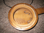 2. Prep the outside ring and body. The outside ring on mine was rusty so I took a wire brush to it and then sprayed it a flat black. Paint all sides of it, it will get wet when installing the new head. For the body make sure that none of the old head in the space where the ring holds the head down. It can be stuck or slightly glued. As a precaution I filled the screw holes with a small dab of glue. I do this to close the holes a little. The holes will not completely close and will leave a dent for you to feel where the screw goes. Give it a day or two to harden and for the paint to dry on the outer ring. Now is also the time to do any sanding/refinishing/repairs to the body and neck. You will not want to take the head off once you get it back on.