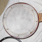 14″ goat skin banjo head. I got mine here
